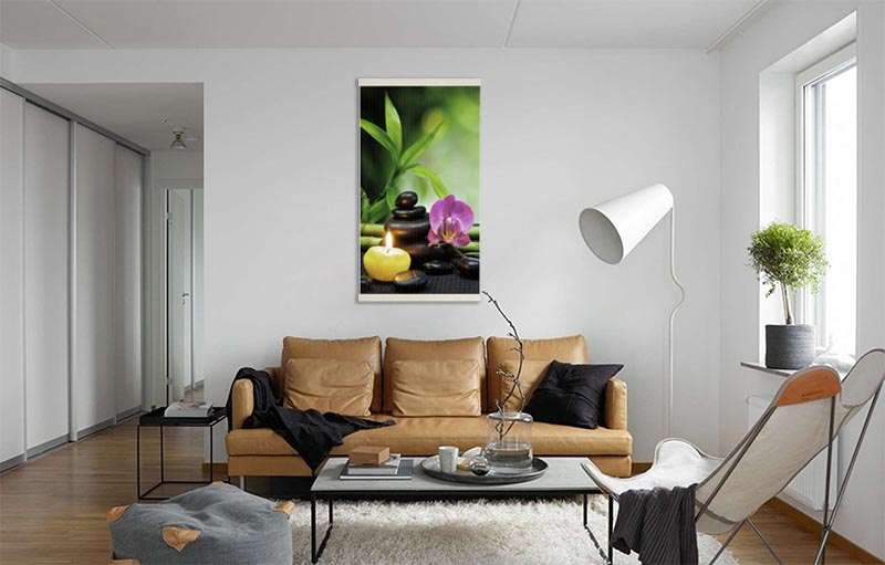 Ar āķa palīdzību sildītāju var piekarināt pie tapetētām sienām, piestiprināt pie koka, ģipškartona sienām u.c. Radiatora pamatdaļa ir izgatavota no saliekamībai un plīsumiem izturīgas polimēra sildīšanas plēves, uz kuras ir uzklāta grafika. Visi elementi tiek savstarpēji savienoti ar koka līstēm.