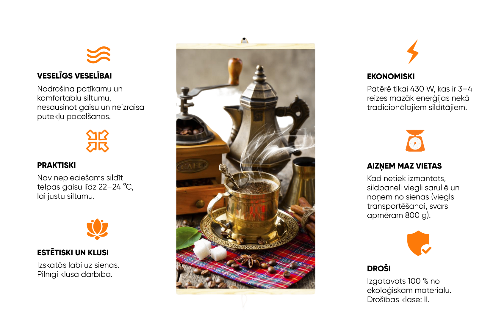 Ekonomisks elektriskais infrasarkanais sildīšanas panelis – EasyHeater Coffee