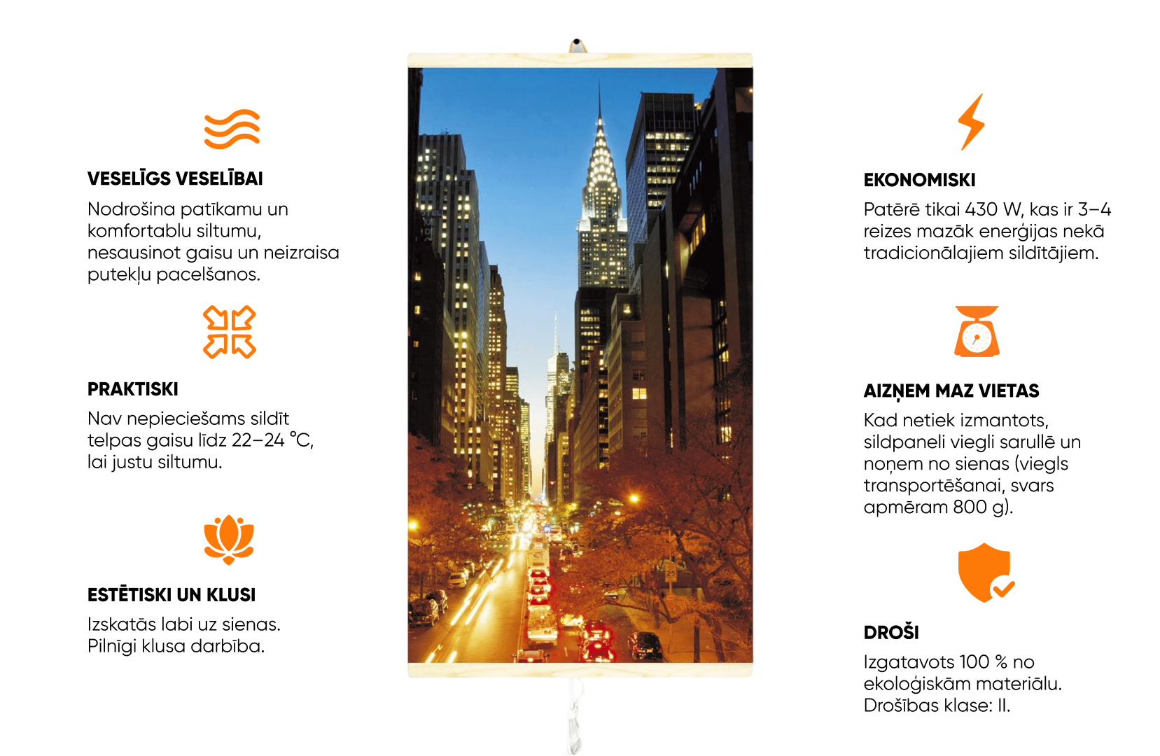 Ekonomisks elektriskais infrasarkanais sildīšanas panelis – EasyHeater Manhattan